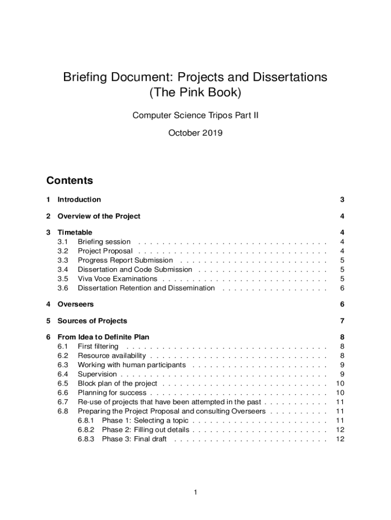 Briefing Document: Projects and Dissertations (The Pink Book) Computer Science Tripos Part II October 2019Contents 1 Introduction32 Overview of the Project43 Timetable 3.1 Briefing session. . . .