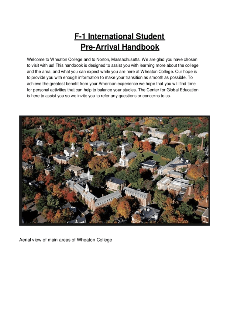 Get the free F-1 International Student Pre-Arrival Handbook - Wheaton College