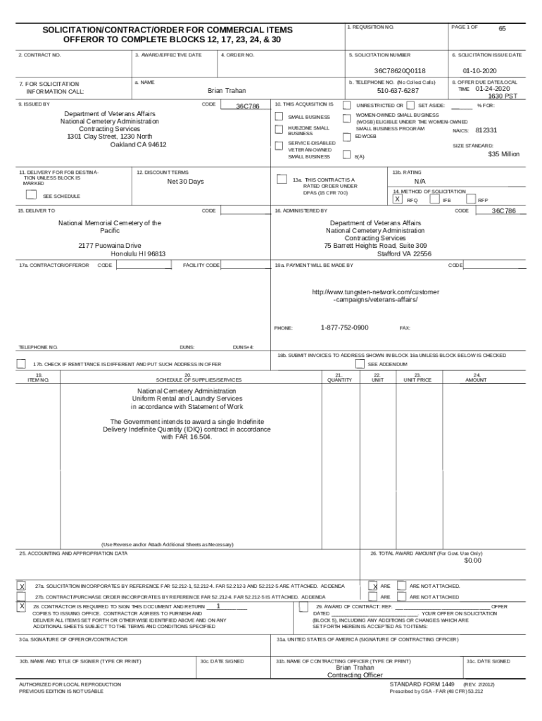 Instructions for the 2 DESCRIPTION/SCHEDULE/ORDERING/PERANCE OF SERVICES5 form