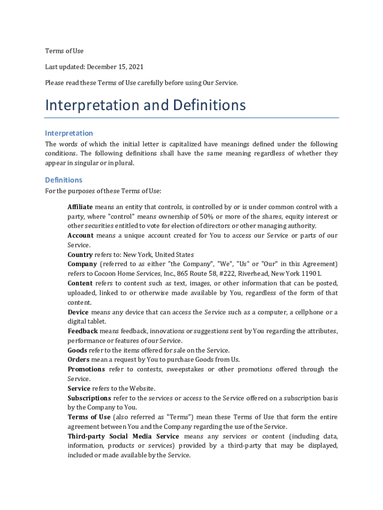 Terms of Use Last updated: December 15, 2021, Please read these Terms of Use carefully before using Our Service. Interpretation and Definitions Interpretation The words of which the initial letter