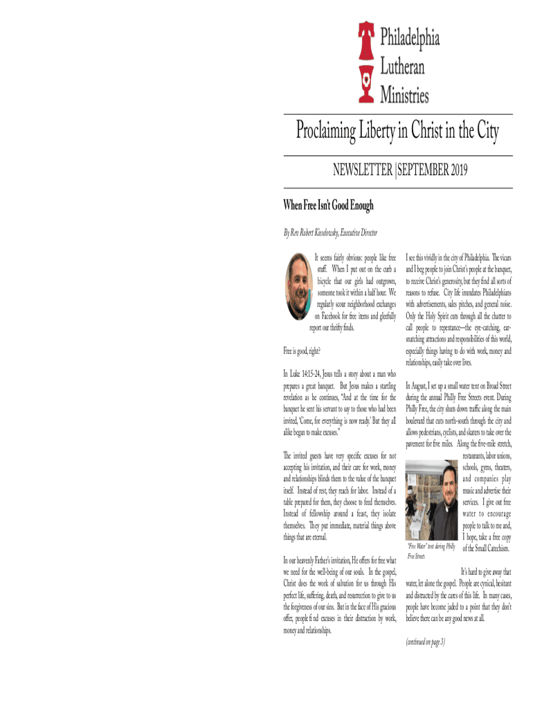 NON PROFIT ORG U.S. POSTAGE PAID PHILADELPHIA PA PERMIT NO. 7657P. O. Box 15155Proclaiming Liberty in Christ in the City Philadelphia, PA 19130 Address Service RequestedNEWSLETTER |SEPTEMBER 2019