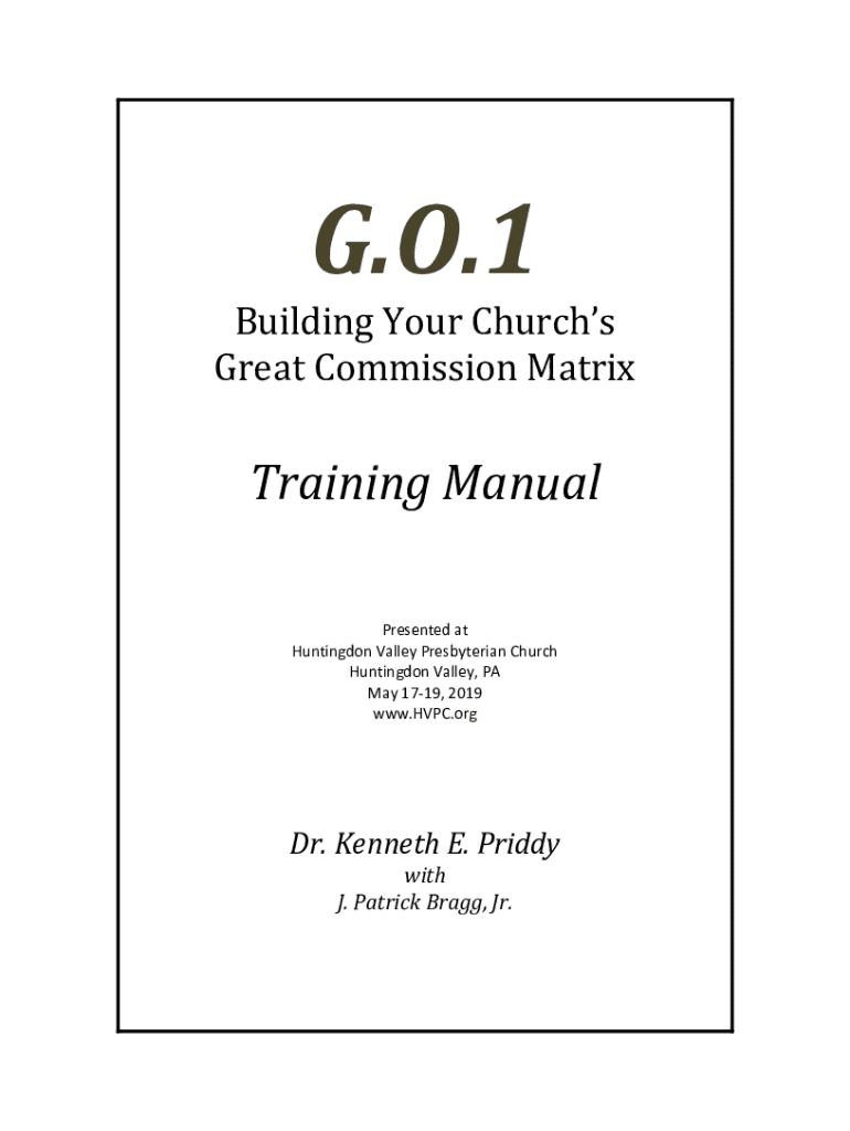 G.O.1Building Your Church's Great Commission MatrixTraining Manual Presented at Huntington Valley Presbyterian Church Huntington Valley, PA May 1719, 2019 www.HVPC.orgDr. Kenneth E. Friday with J.