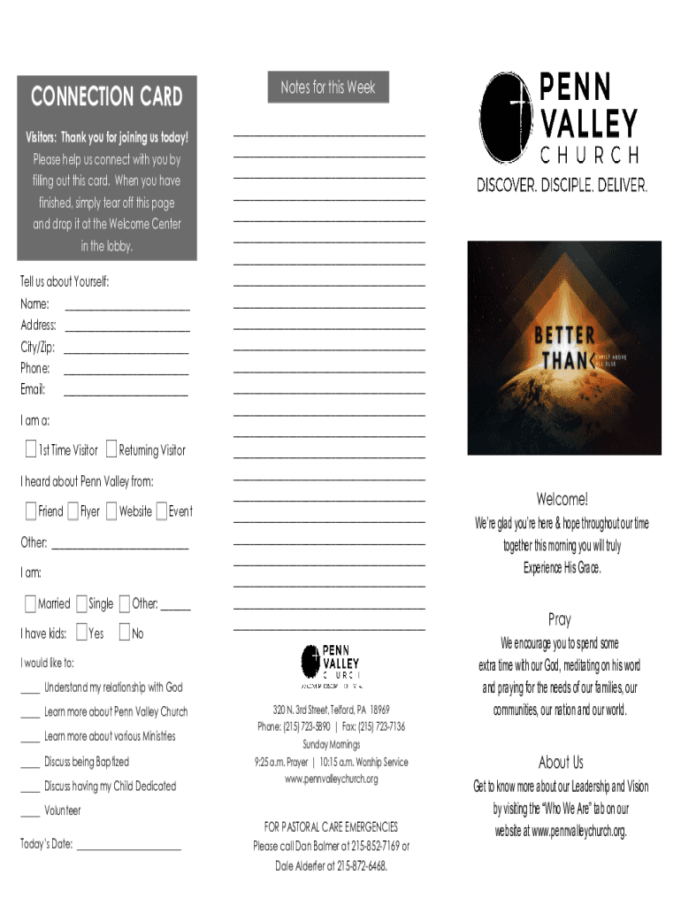 CONNECTION Banknotes for this WeekVisitors: Thank you for joining us today! Please help us connect with you by filling out this card. When you have finished, simply tear off this page and drop it