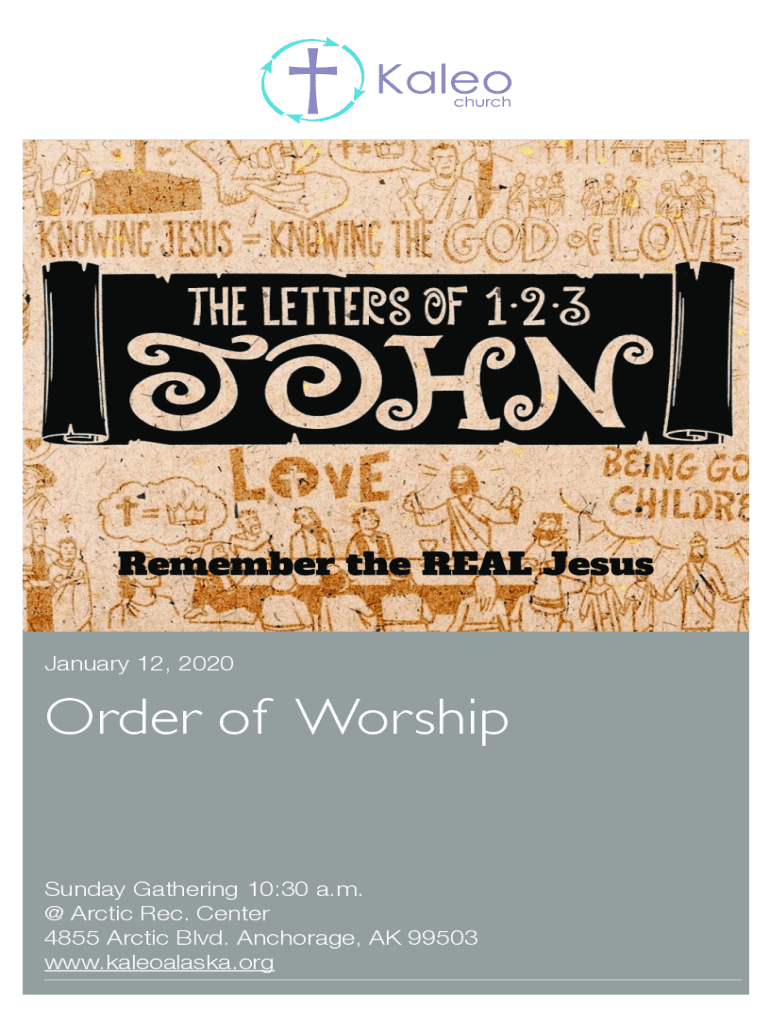 January 12, 2020Order of Worship Sunday Gathering 10:30 a.m. @ Arctic Rec. Center 4855 Arctic Blvd. Anchorage, AK 99503 www.kaleoalaska.orgFOR REFLECTIONPRELUDE Good morning! Please use this time