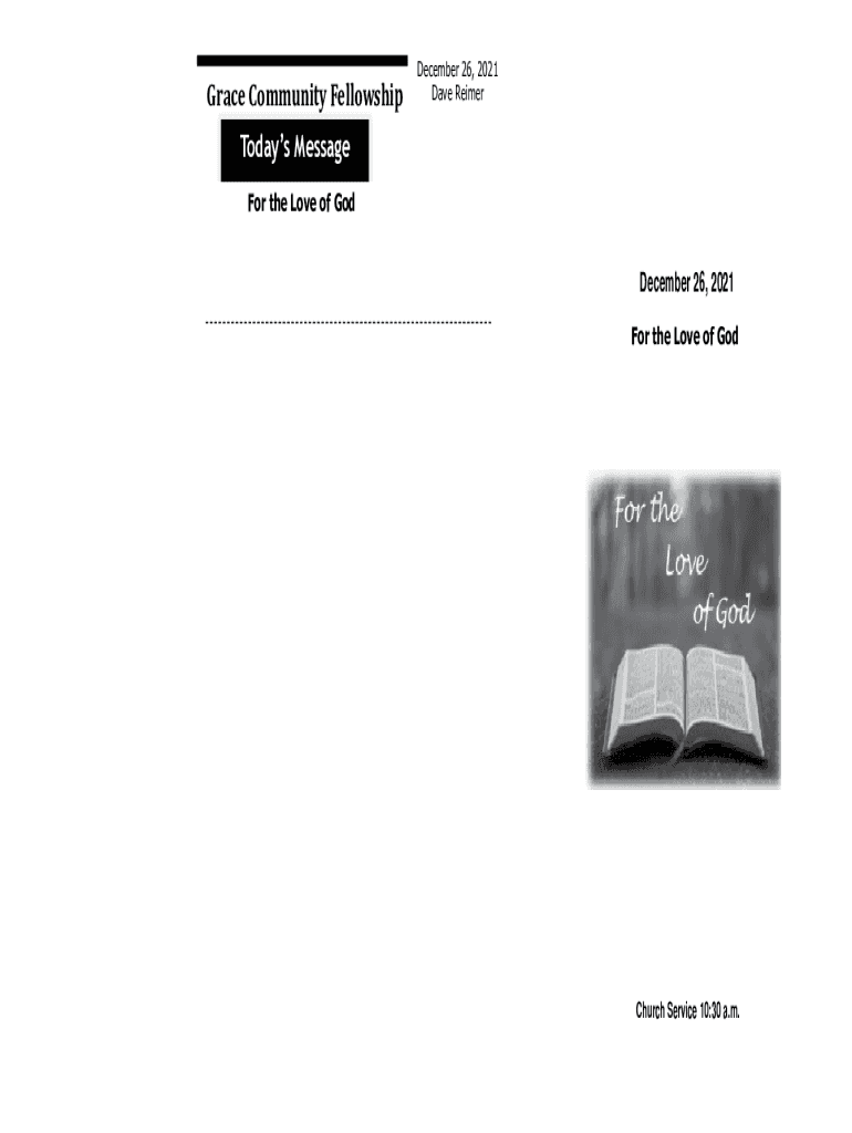 Grace Community Fellowship December 26, 2021, June 4, 2017, Dave Cameraman UtechtTodays Message For the Love of God Seeking the LOST The product of the gospel Acts 2:4247I. ___ (v. 42) A. The ___
