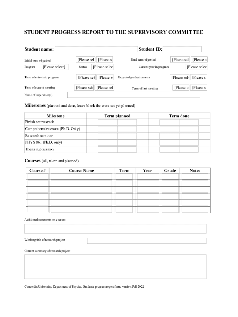 INSTRUCTIONS FOR COMPLETING THE STUDENT REPORT You must fill one report form per supervisory committee meeting, electronically as a PDF form. Each report should be a continuation of the previous report(s).