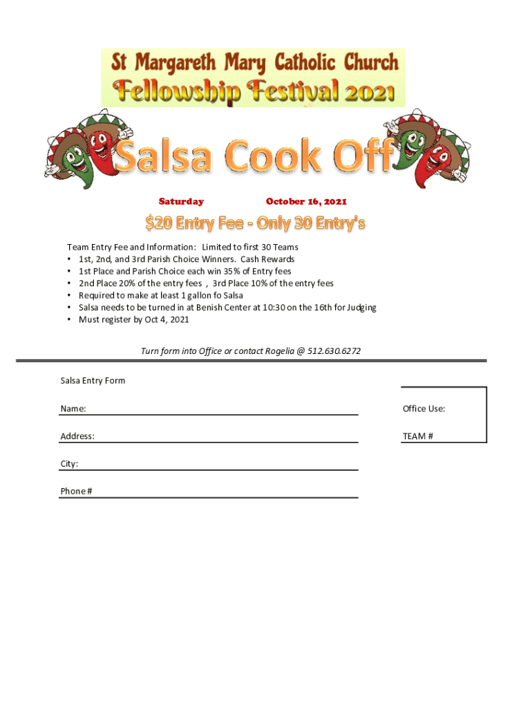 Get the free Salsa Entry Form Name - St. Margaret Mary Catholic Church