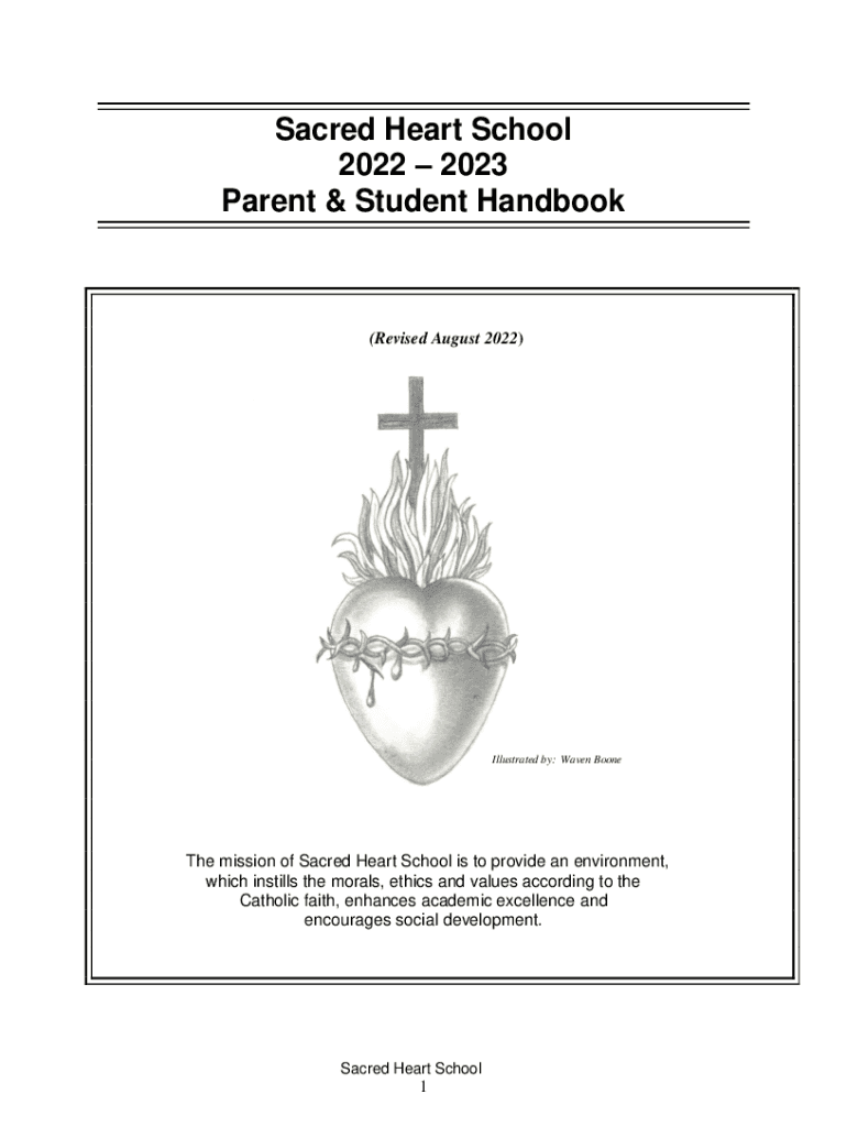 Sacred Heart School 2022 2023 Parent & Student Handbook(Revised August 2022)Illustrated by: Wave Booth mission of Sacred Heart School is to provide an environment, which instills the morals, ethics