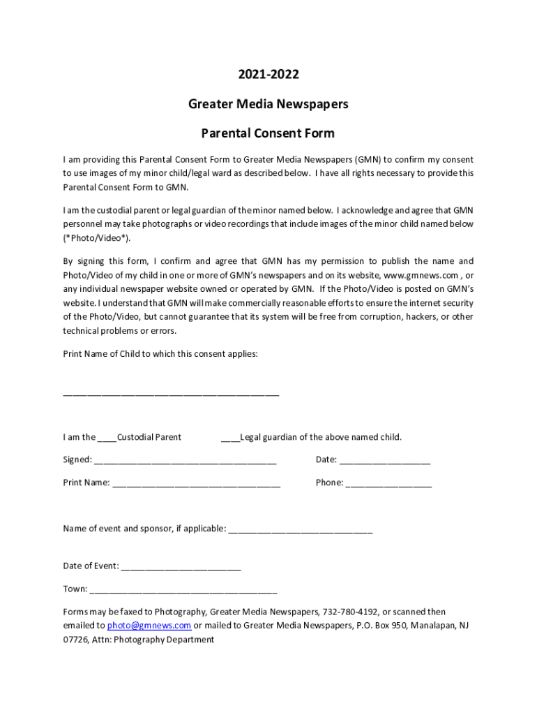 20212022 Greater Media Newspapers Parental Consent Form I am providing this Parental Consent Form to Greater Media Newspapers (GUN) to confirm my consent to use images of my minor child/legal ward