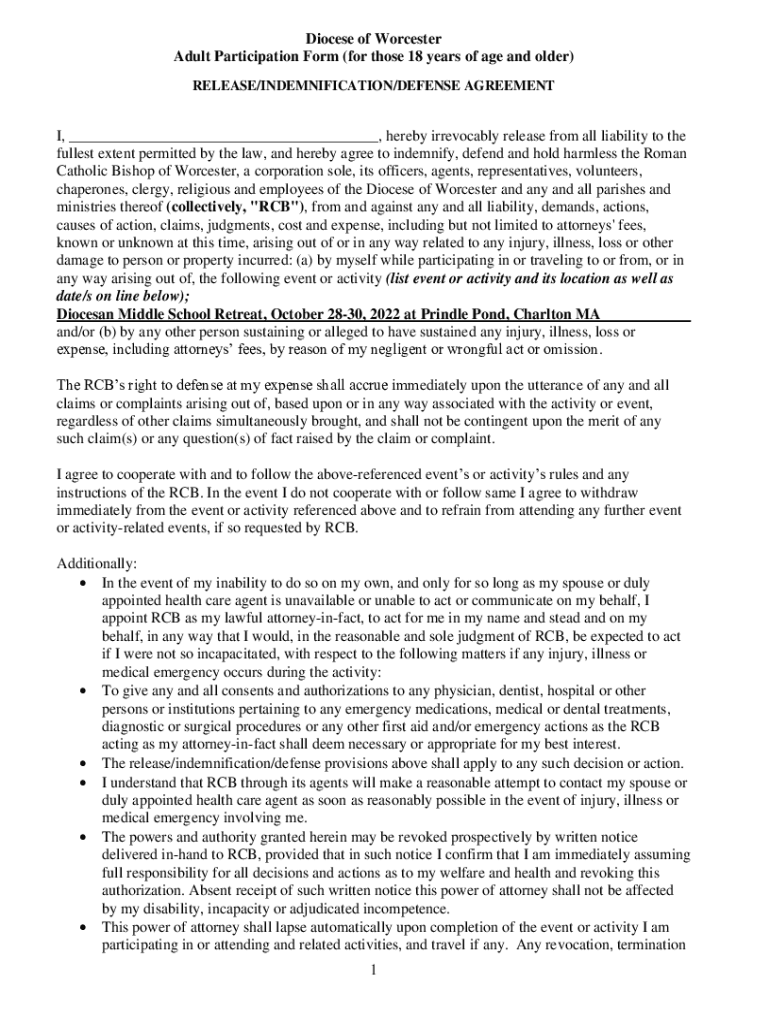 Get the free 1 Diocese of Worcester Adult Participation Form (for those 18 ... - AWS