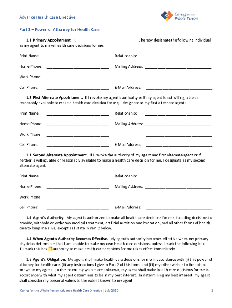 Choose a healthcare agent to make decisions on your behalf if you are unable to do so.