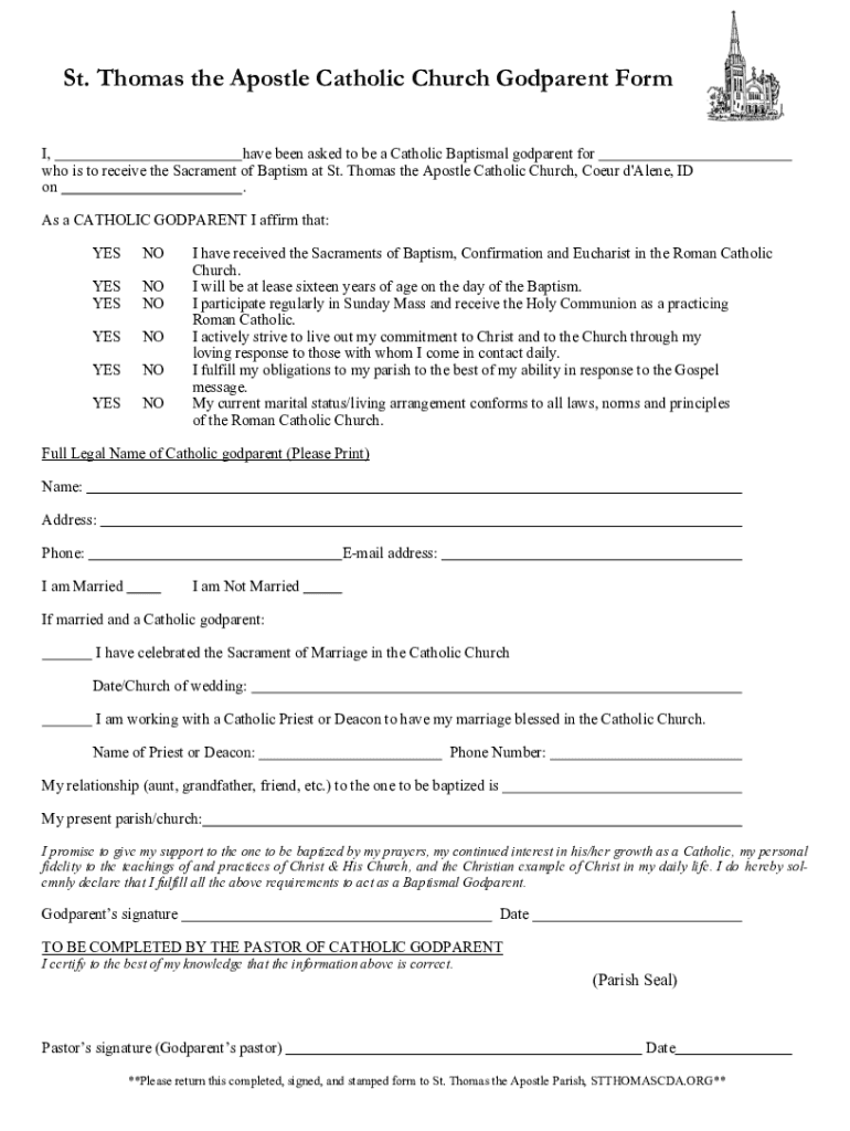 Get the free St. Thomas the Apostle Catholic Church Godparent Form