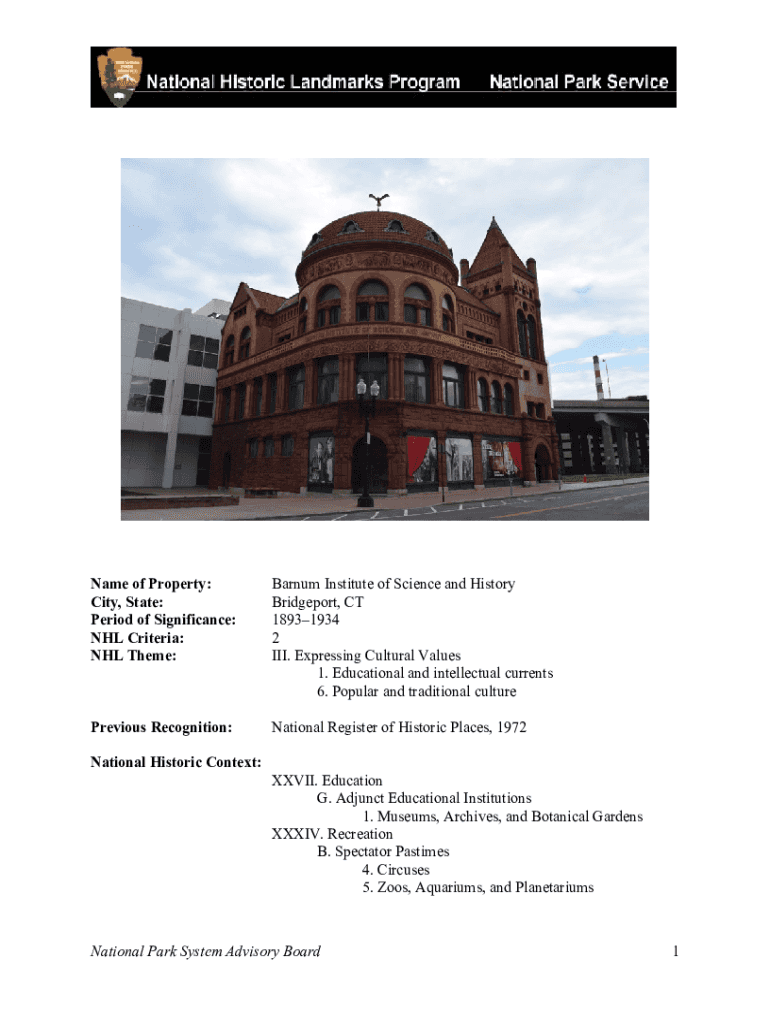 Get the free Name of Property: City, State: NHL Criteria - National Park Service