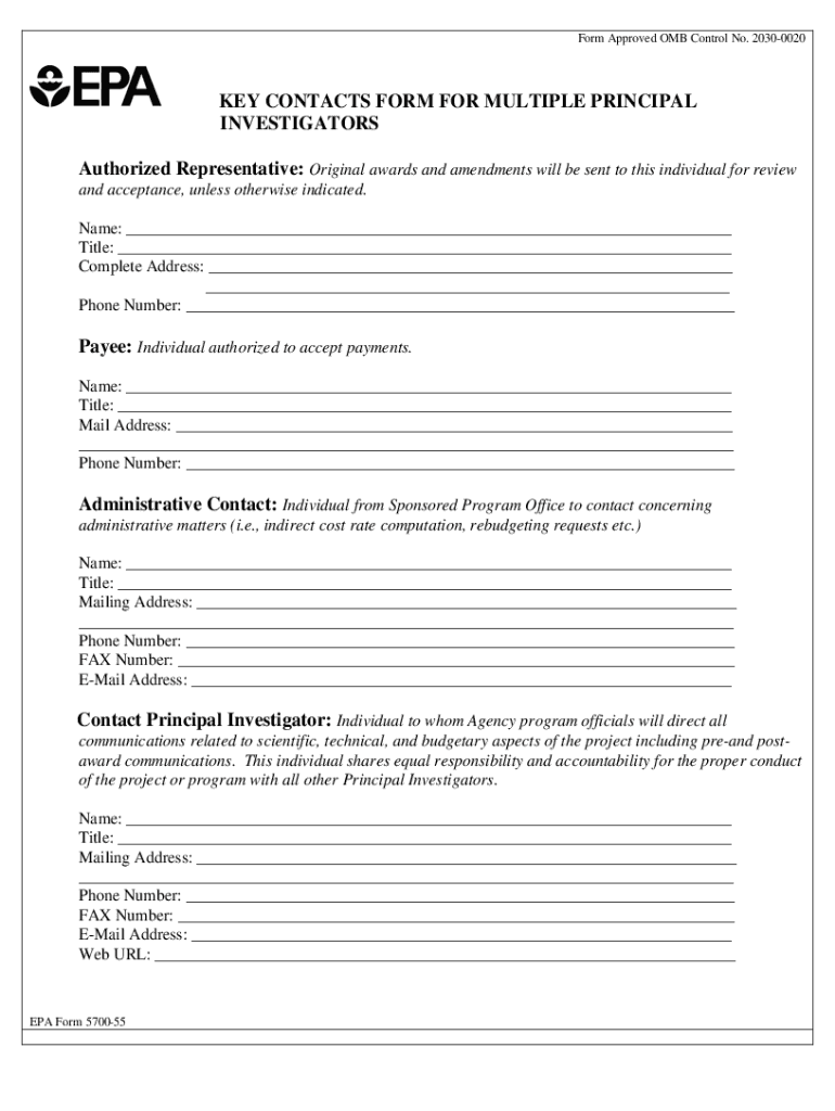Form Approved OMB Control No. 20300020KEY CONTACTS FORM FOR MULTIPLE PRINCIPAL INVESTIGATORS Authorized Representative: Original awards and amendments will be sent to this individual for review and