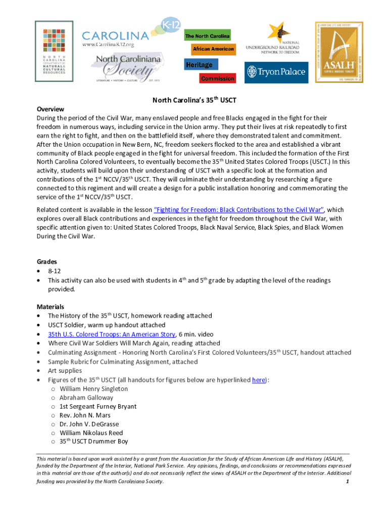 Get the free From Enslaved to Freed People35th USCT ... - Civil War Era NC - k12database unc