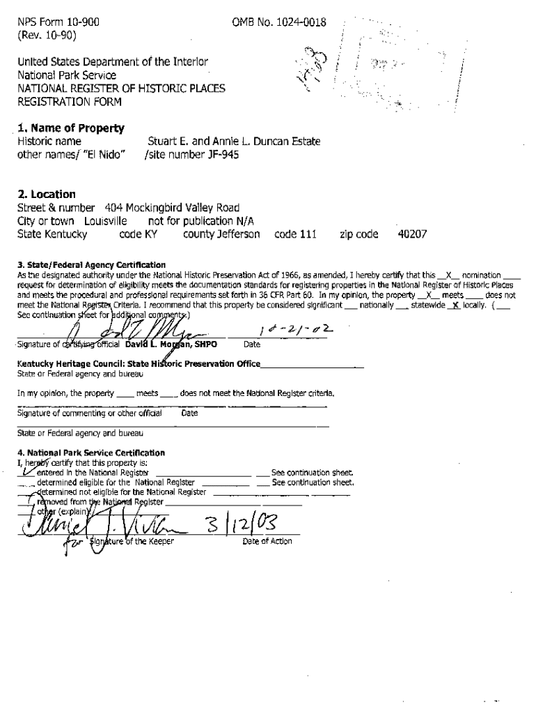 Get the free NPS Form No. United States Department of the Interior National Park ...