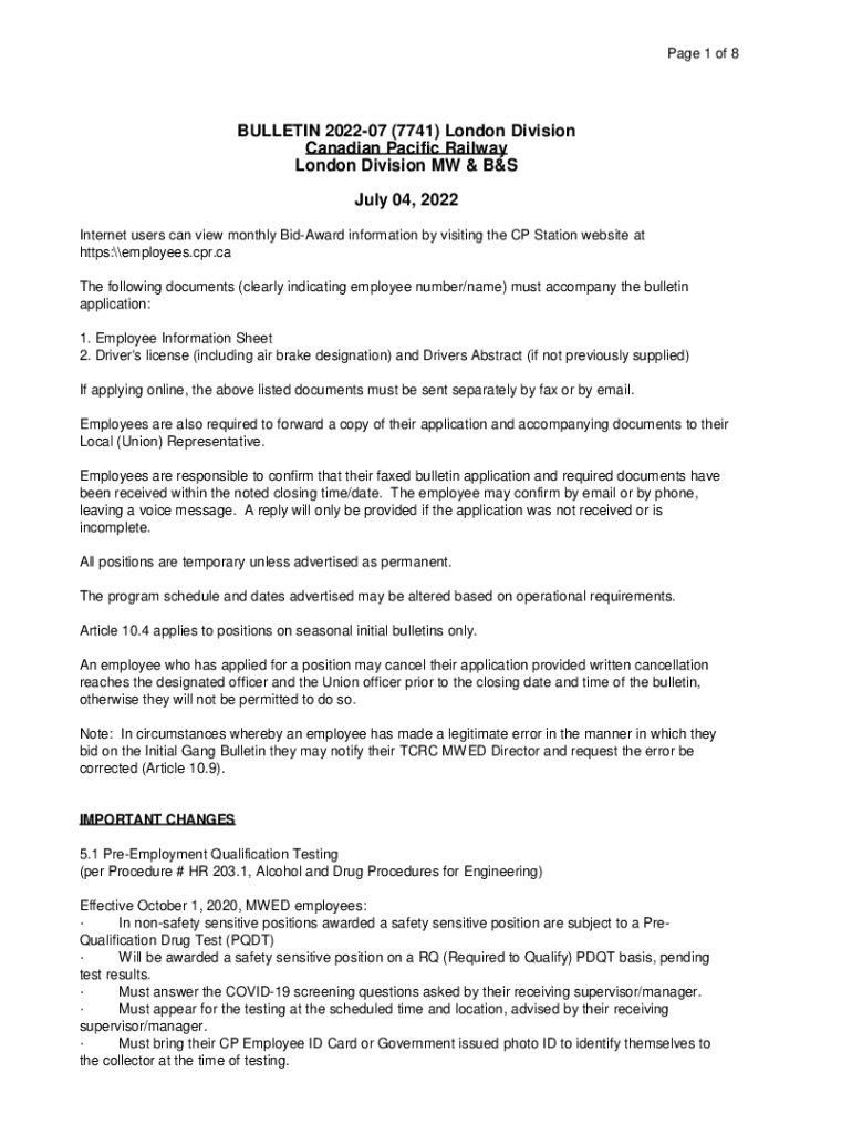 Get the free BULLETIN 2022-08 (7770) London Division Canadian Pacific Railway London ...