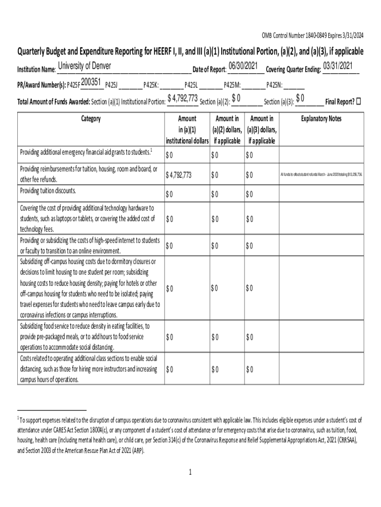 Get the free University of Denver HEERF II Quarterly Report 3.31.21.pdf