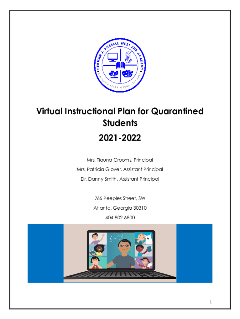 Virtual Instructional Plan for Quarantined Students 20212022 Mrs. Tianna Rooms, Principal Mrs. Patricia Glover, Assistant Principal Dr. Danny Smith, Assistant Principal765 Peoples Street, SW Atlanta,