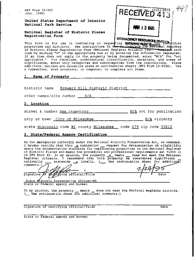 Get the free NFS Form 10-900 United States Department of the Interior NATIONAL ... - MS
