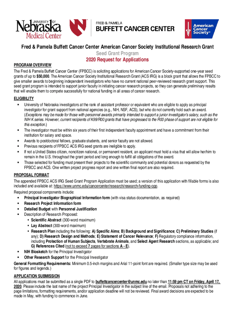 Get the free blog.unmc.eduresearch2020/03/24FPBCC and ACS Institutional Research Grant Seed Grant...