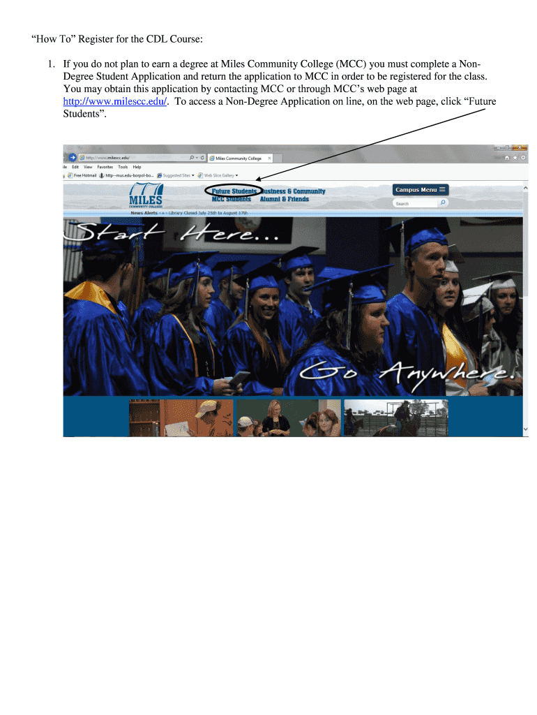1. If you do not plan to earn a degree at Miles Community College (MCC) you must complete a NonDegree Student Application and return the application to MCC in order