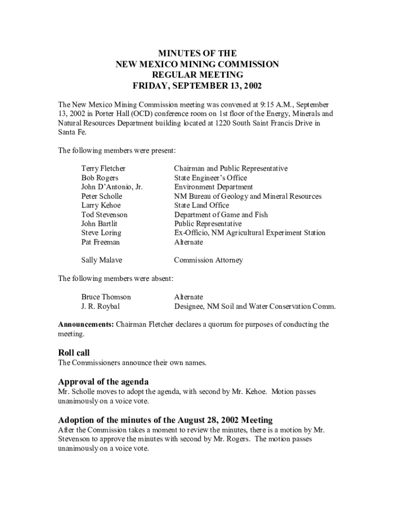 Get the free New Mexico Mining Commission - Mining and Minerals