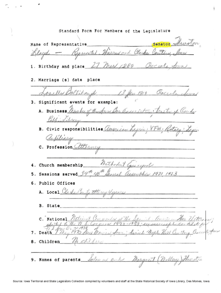 Standard Form For Members of the Le91slature2. Marriage (s) dateplacef3. Significant events for example: A. Business, /.y \” Vital ./FM;, ;,1 f),,,(/IB. Civic responsibilitiesvfiA d:j, 1::, k. JT/