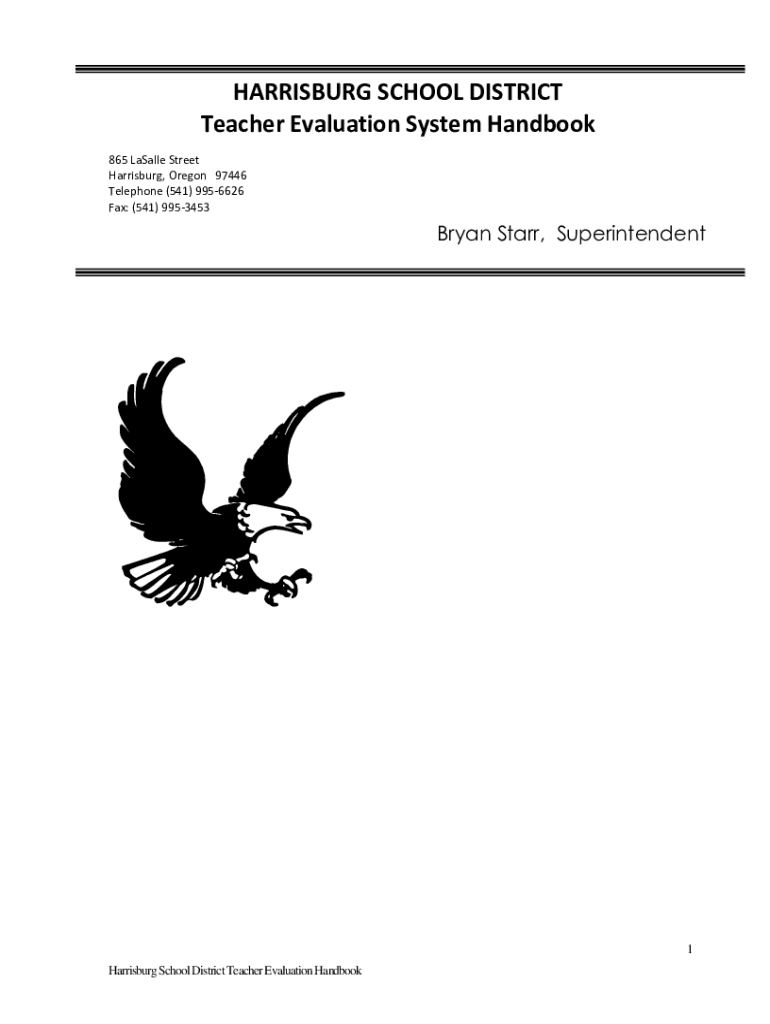 HARRISBURG SCHOOL DISTRICT Teacher Evaluation System Handbook 865 Basally Street Harrisburg, Oregon 97446 Telephone (541) 9956626 Fax: (541) 9953453Bryan Starr, Superintendent1 Harrisburg School District