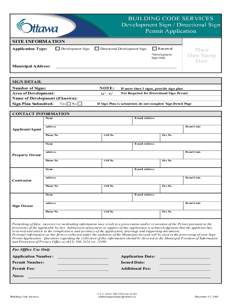 Get the free BUILDING CODE SERVICES - Development Sign/Directional Sign Permit Application