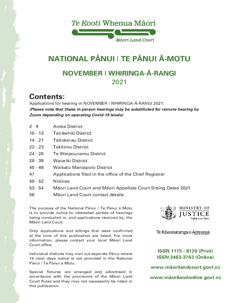 Applications for hearing in NOVEMBER | WHIRINGARANGI 2021: