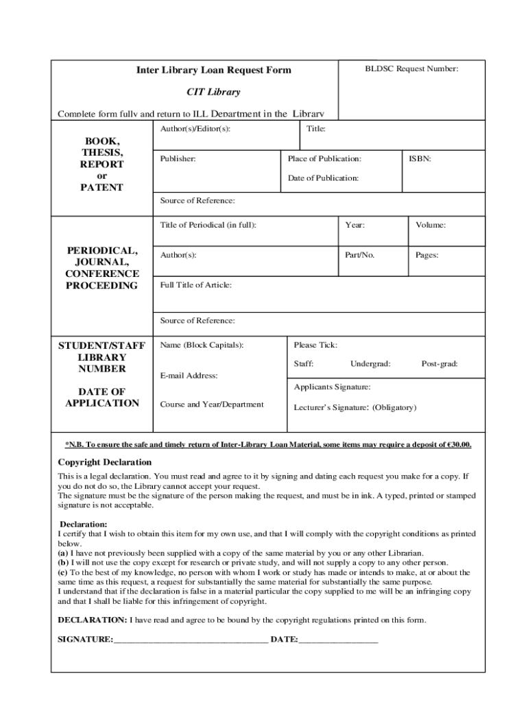 Fill out your interlibrary loan request formcity online with pdfFiller!