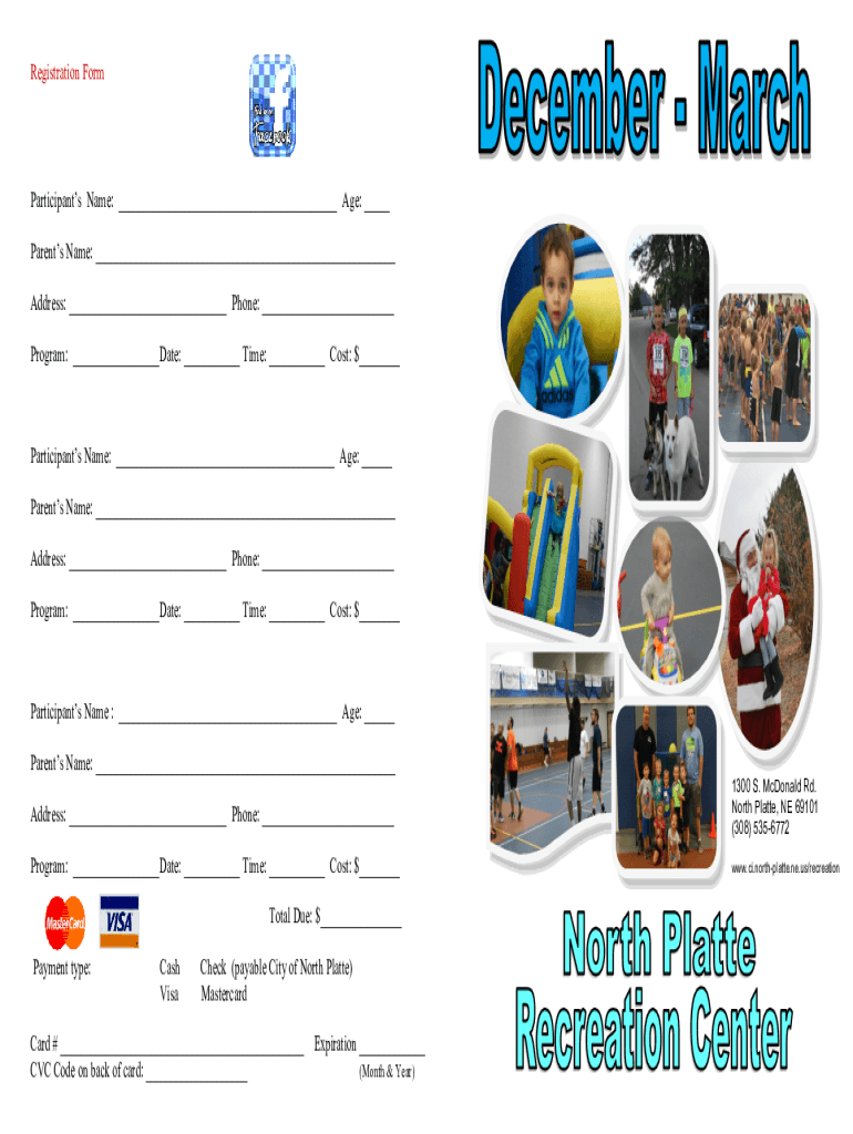 Registration Nonparticipants Name: ___ Age: ___ Parents Name: ___ Address: ___ Phone: ___ Program: ___Date: ___ Time: ___ Cost: $___Participants Name: ___ Age: ___ Parents Name: ___ Address: ___ Phone: