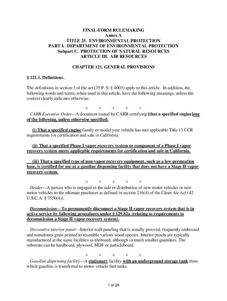 INFORM REMAKING Annex A TITLE 25. ENVIRONMENTAL PROTECTION PART I. DEPARTMENT OF ENVIRONMENTAL PROTECTION Subpart C. PROTECTION OF NATURAL RESOURCES ARTICLE III. AIR RESOURCES CHAPTER 121. GENERAL