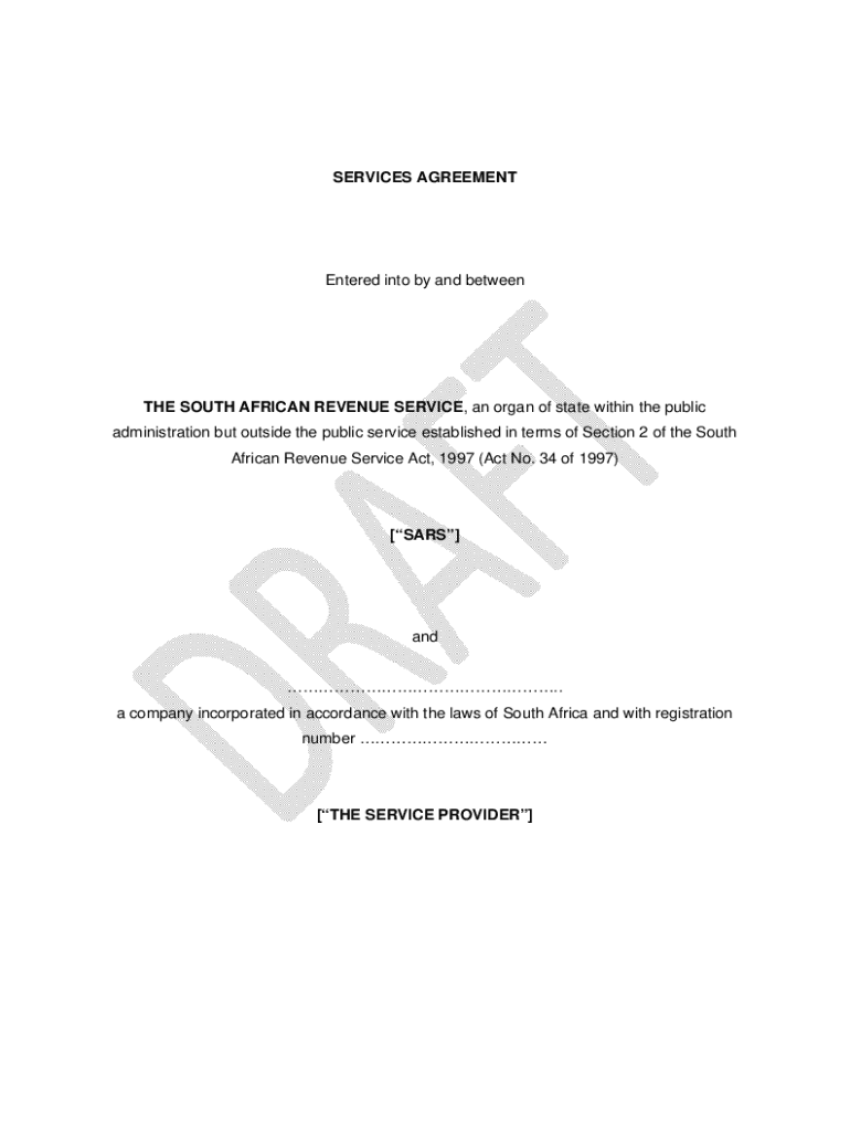SERVICES AGREEMENTEntered into by and between SOUTH AFRICAN REVENUE SERVICE, an organ of state within the public administration but outside the public service established in terms of Section 2 of