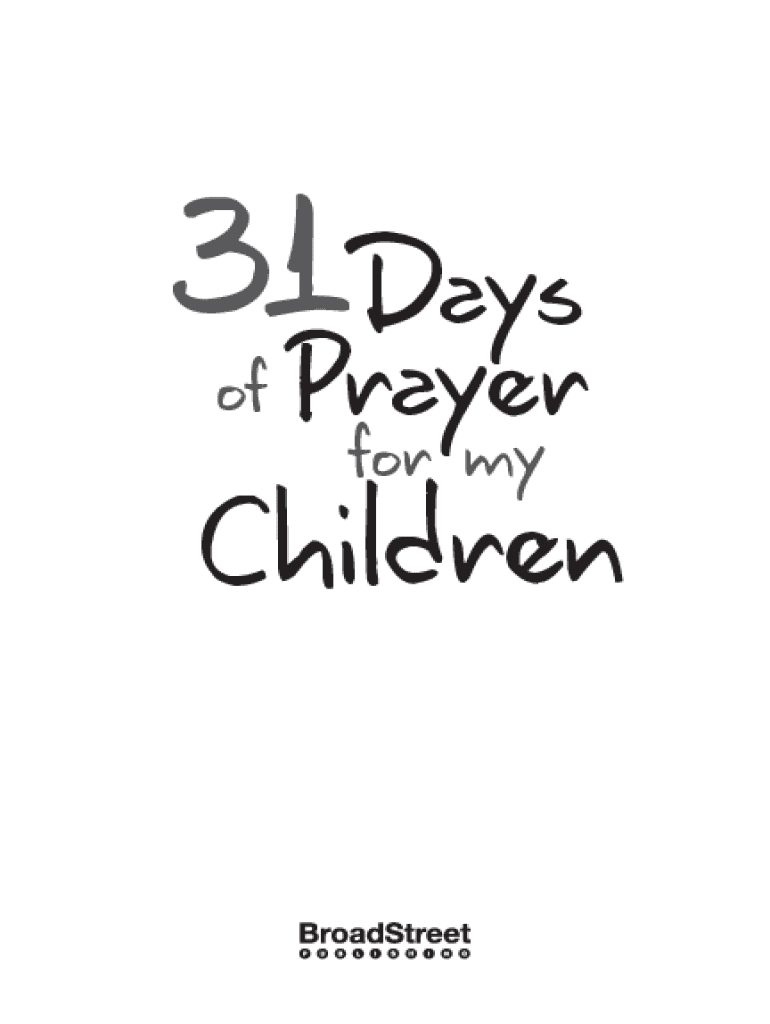31Days prayer for myChildrenBroadStreet Publishing Group, LLC Savage, Minnesota, USA BroadStreetPublishing.com31 Days of Prayer for My Children Copyright 2018 Great Commandment Network ISBN: 9781424556212