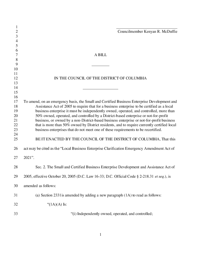Get the free The-Local-Business-Enterprise-Clarification-Emergency-Act ...