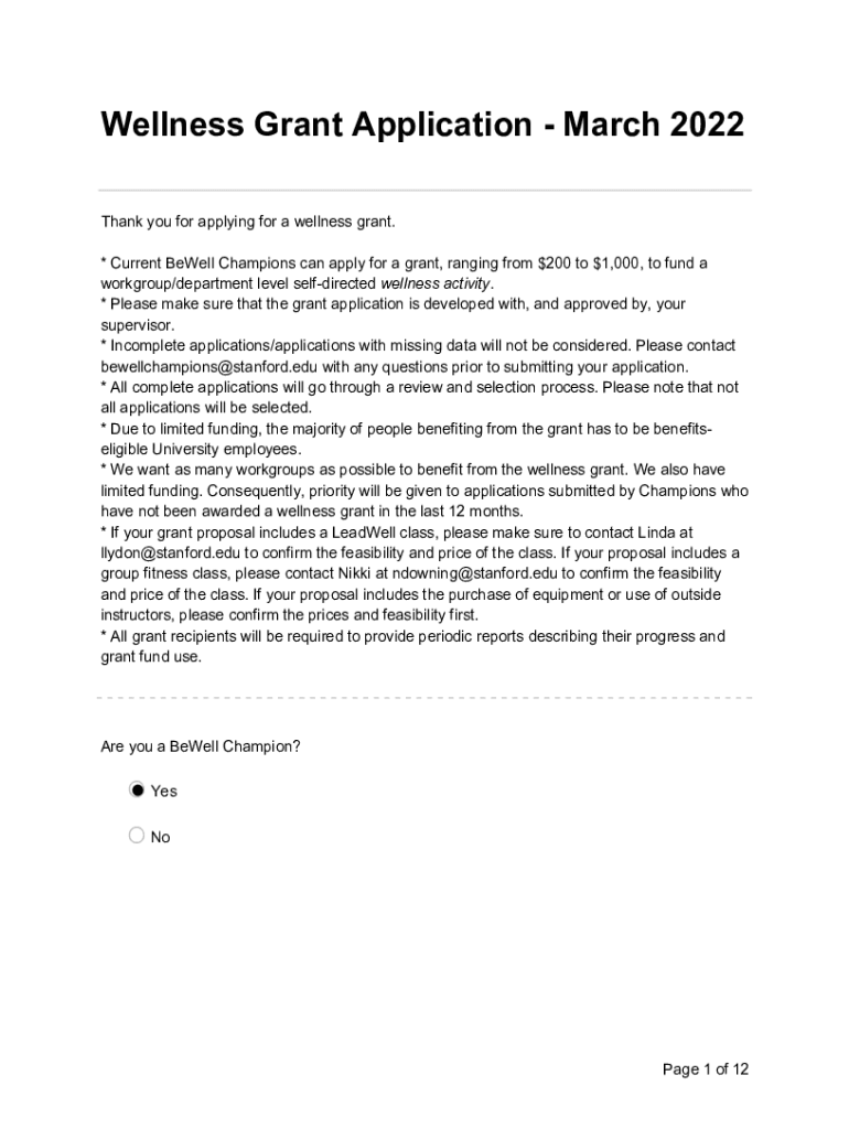 Get the free Wellness Grant Sample Application - Stanford BeWell - bewell stanford
