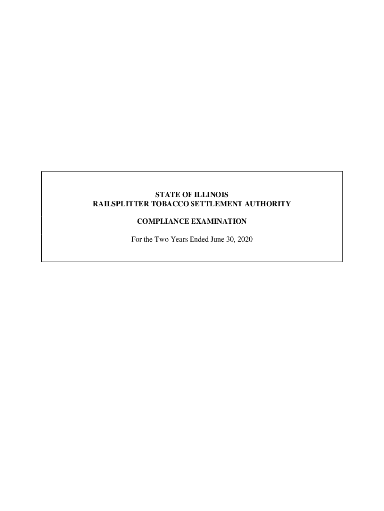 Get the free STATE OF ILLINOIS RAILSPLITTER TOBACCO SETTLEMENT AUTHORITY COMPLIANCE ...