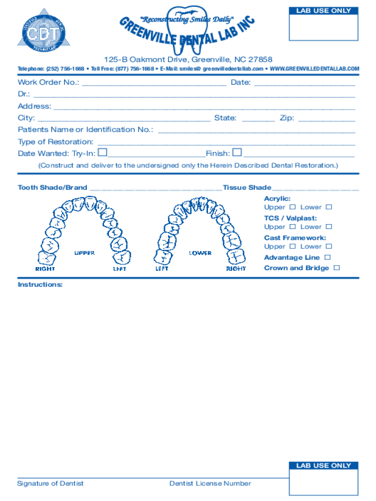 How to fill out greenville dental lab dental
