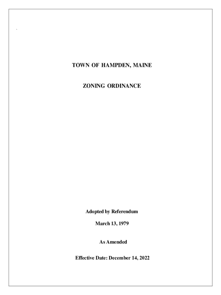 `TOWN OF HAMDEN, MAINTAINING ORDINANCEAdopted by Referendum March 13, 1979As Amended Effective Date: December 14, 2022TOWN OF HAMDEN, MAINE ZONING ORDINANCECERTIFIED BY:______Gayle C. Decker, Town