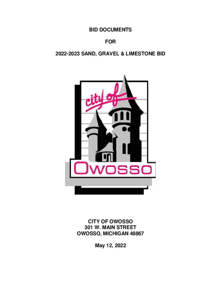 BID DOCUMENTS FOR 20222023 SAND, GRAVEL & LIMESTONE SimCity OF OWASSO 301 W. MAIN STREET OWASSO, MICHIGAN 48867 May 12, 2022NOTICE TO BIDDERS 20222023 SAND, GRAVEL & LIMESTONE BID FOR THE CITY OF
