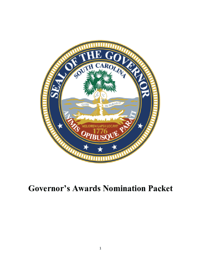 Governor Awards Nomination Packet1Governors Awards The Governor of South Carolina may bestow upon a citizen of the State of South Carolina the Order of the Palmetto, the Order of the Silver Crescent,