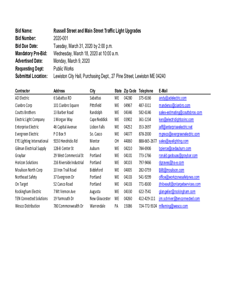 Submittal Location:Russell Street and Main Street Traffic Light Upgrades