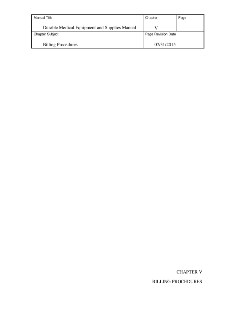 BILLING PROCEDURESManual TitleChapterDurable Medical Equipment