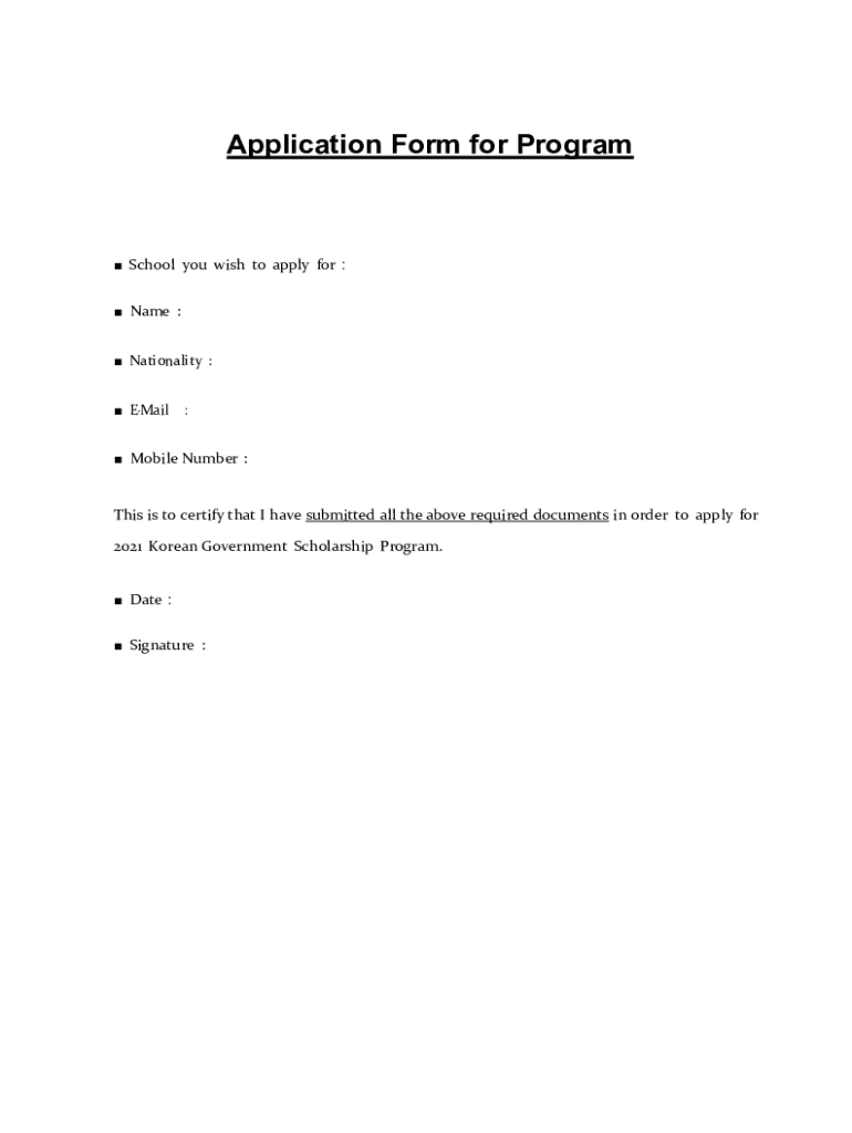 Application Form for Program School you wish to apply for Name : Nationality : Email : Mobile Number :This is to certify that I have submitted all the above required documents in order to apply for