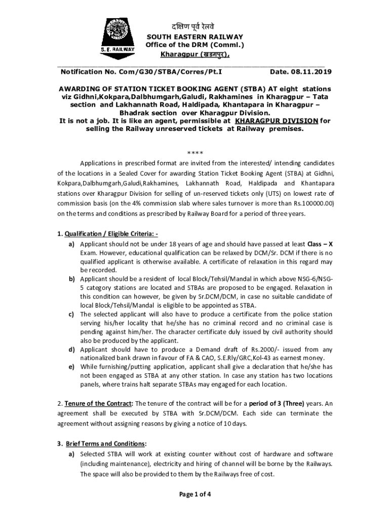 AWARDING OF STATION TICKET BOOKING AGENT (SBA) AT eight stations
