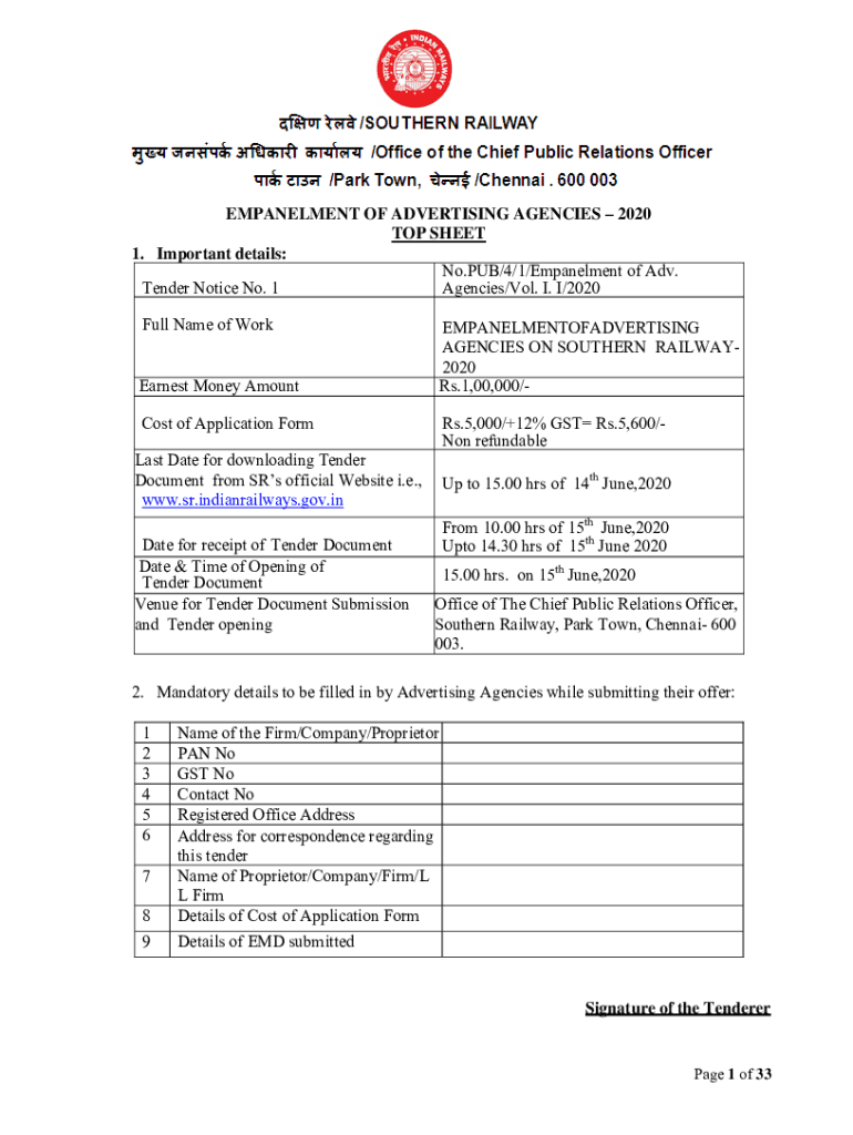 Get the free Issue of Tender Advertisement Empanelment 200520