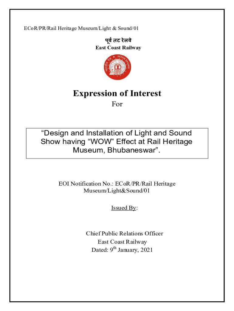 Eastcoastrailindianrailwaysgovinuploadsfilesexpression of interest is a document requesting individuals or organizations to express their interest in a particular project or opportunity offered by the East Coast Railways, Indian Railways.