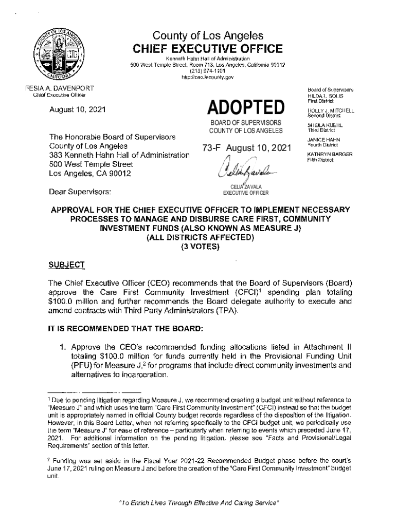 County of Los Angeles CHIEF EXECUTIVE OFFICE Kenneth Hahn Hall of Administration 500 West Temple Street, Room 71 3, Los Angeles, California 90012 HTTP I/CEO la county govlLIPOFESIA A. DAVENPORT Chief